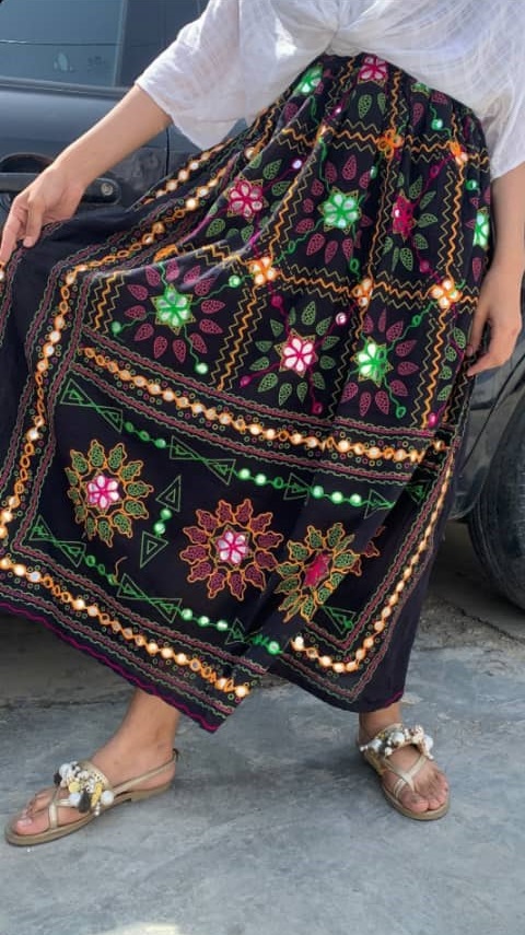 دامن سوزندوزی بلوچی آینه کاری شده