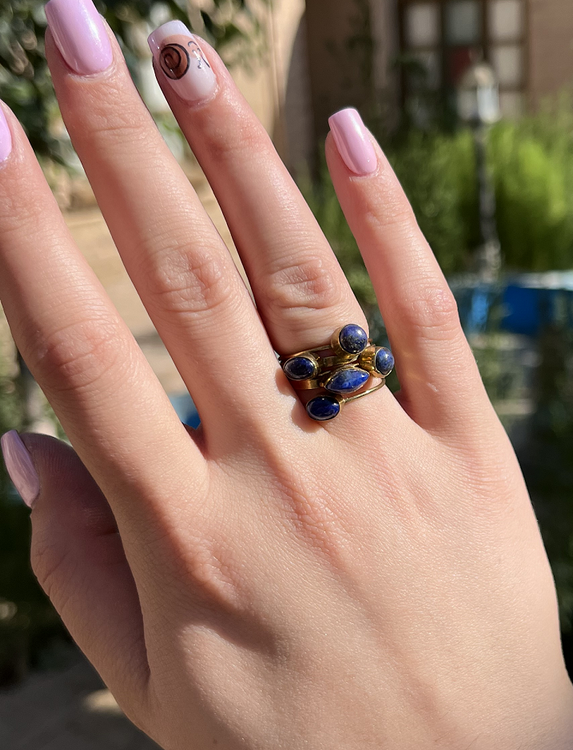 انگشتر برنجی با سنگ لاجورد پنج حلقه